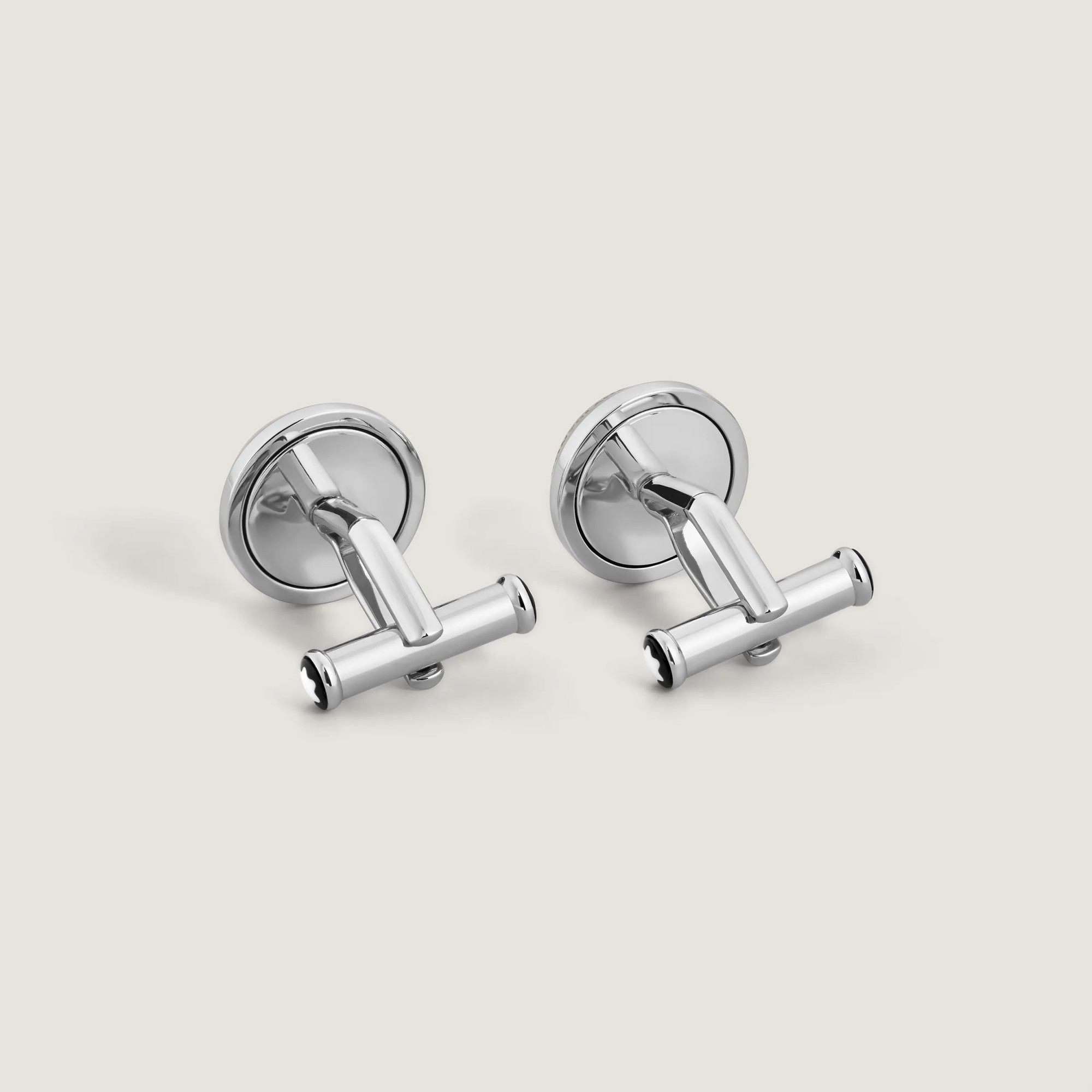 Abotoaduras em aço inoxidável inspiradas no mostrador do relógio Montblanc Star Legacy Moonphase. As abotoaduras possuem um mecanismo giratório que permite exibir as diferentes fases da Lua.