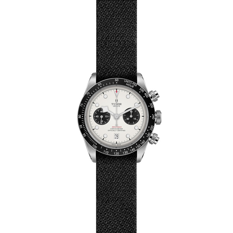 Com caixa em fibra de carbono de alto desempenho, este cronógrafo inédito está pronto para competir. A estética presente neste relógio espelha as cores do carro da equipa Visa Cash App Racing Bulls, o VCARB02, seja através do mostrador racing white ou da fibra de carbono usada nos subcontadores do cronógrafo.