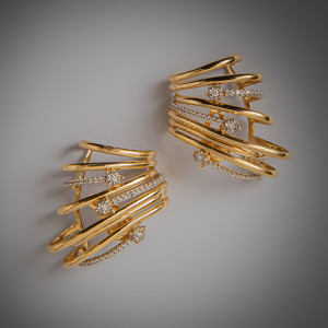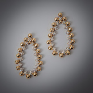 Brinco Aritculado em Gota em Ouro e Diamantes