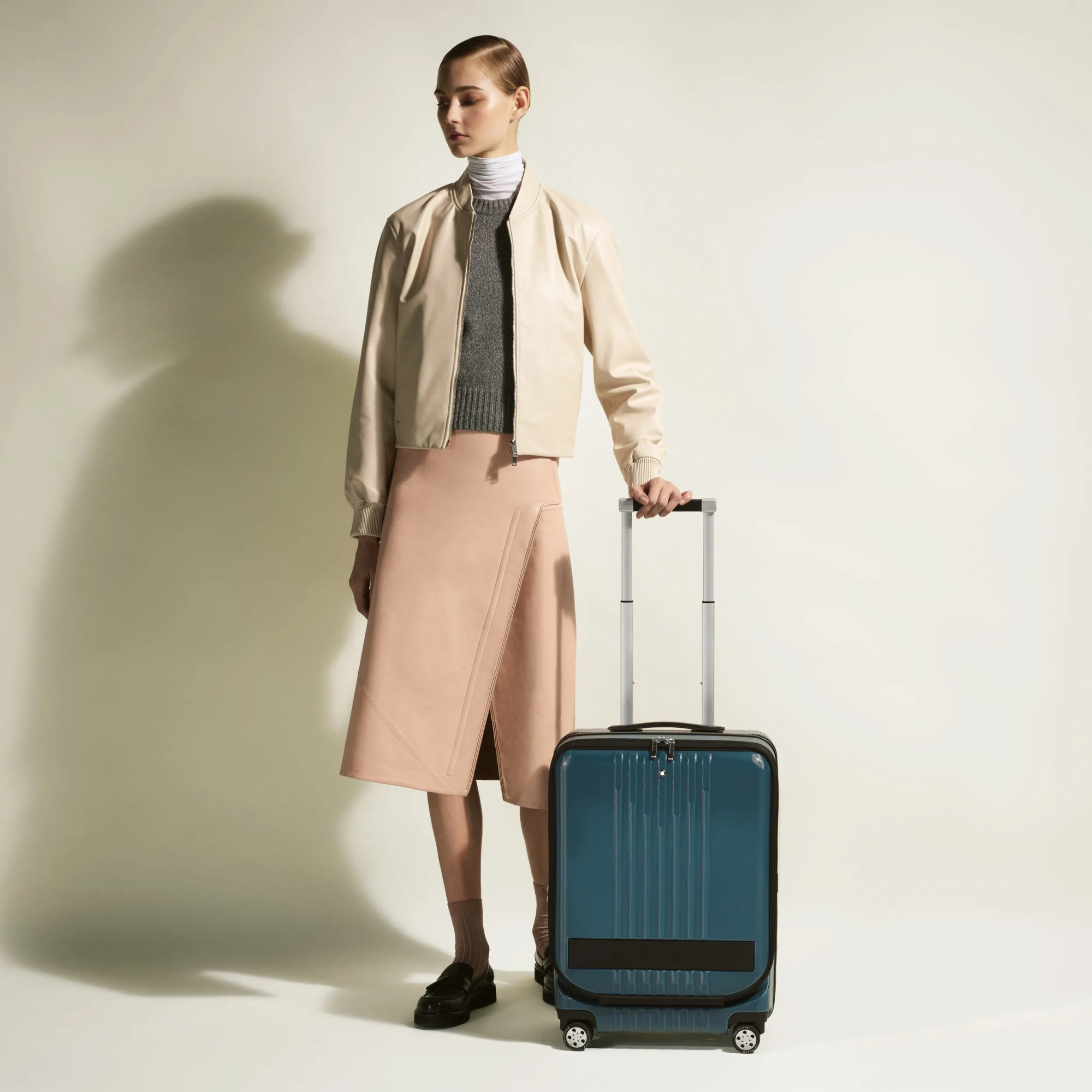 Embarque em cada jornada com estilo com a série de malas #MY4810. Esta mala de cabine, construído em policarbonato leve durável em avio blue elegante e detalhado com acabamentos em couro preto elegante, oferece praticidade com suas quatro rodas de rolamento suave, alça ajustável e compartimentos bem planejados para embalagem organizada.
