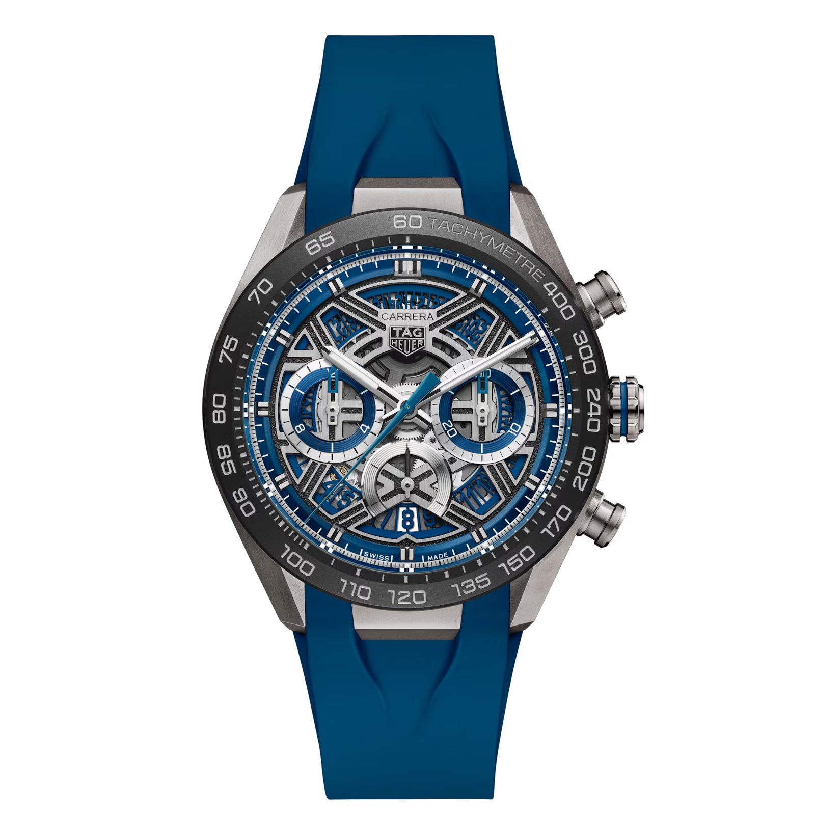 TAG Heuer Carrera, Azul, Borracha, 44mm