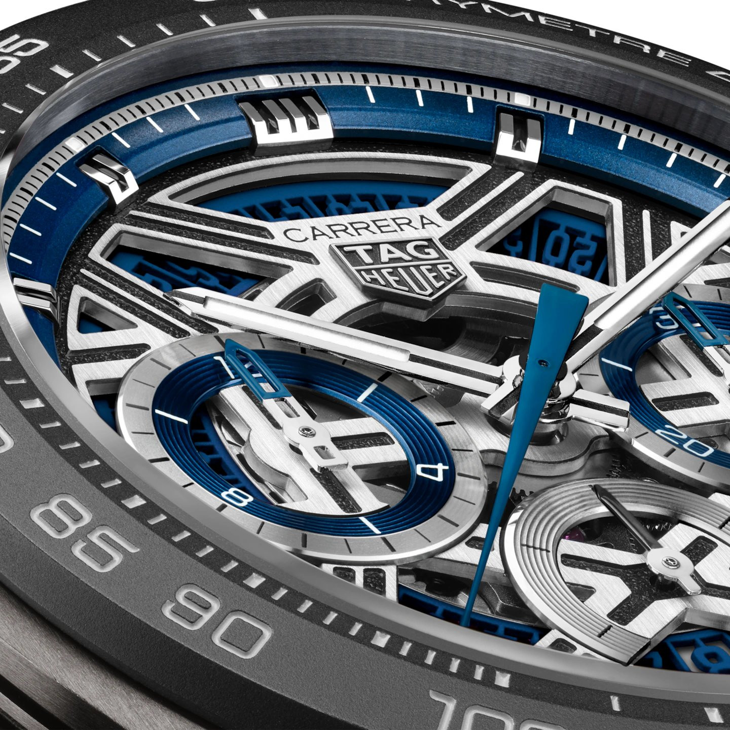 Aprimore o seu estilo com o TAG Heuer Carrera Chronograph, um testemunho da emoção do automobilismo. Com seu design arrojado e detalhes em azul, o mostrador esqueletizado deste relógio captura a essência da velocidade e da inovação. Pronto para sair na frente com estilo.