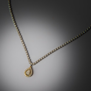 Gargantilha Leque Esmeralda Colombiana e Diamantes