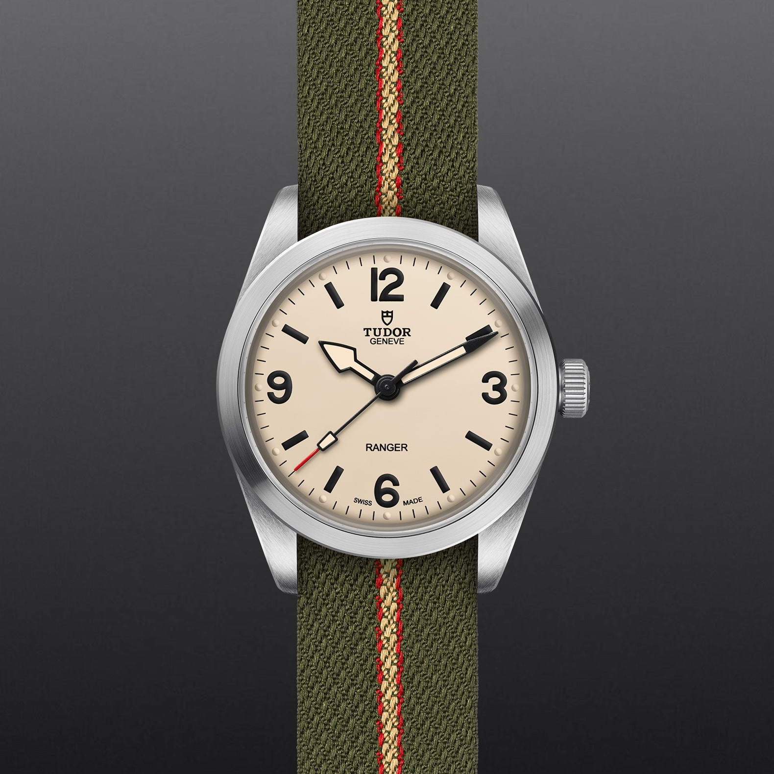 Ranger m79930-0008, Caixa de 36mm em Aço com acabamento acetinado, Luneta lisa em aço escovado com acabamento acetinado, calibre MT5400 (COSC), Calibre de Manufatura MT5400 (COSC) Movimento mecânico de corda automática com sistema de rotor bidirecional, estanque até 100 m, pulseira em Tecido